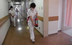 今回の訓練では、病棟各階を出火場所と設定して3回にわたる訓練となりました。職員の基本的な動きについては事前に設定しましたが、基本となるストーリーについては各階によるミーティングの上決定したため、能動的な大変意義のある訓練となりました。